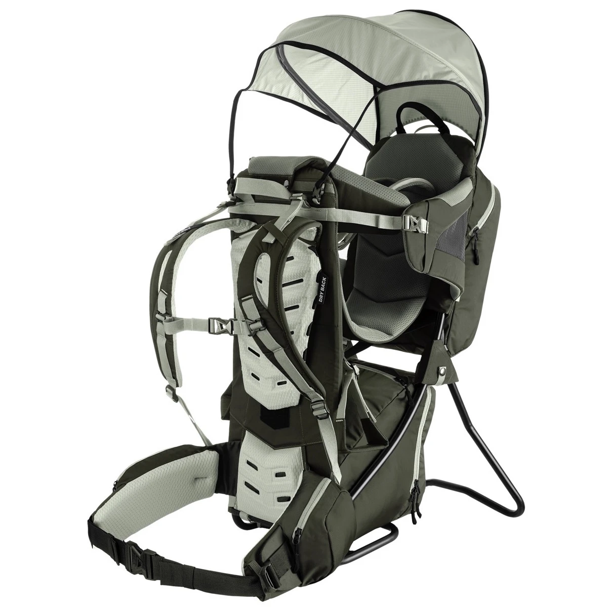Sistemul de transport reglabil Dry Back Custom are un panou dorsal reglabil pe înălțime și bretele de umăr și centură de șold căptușite, cu formă anatomică, pentru ajustare individuală și suport lombar extra-căptușit. În plus, chingile pentru ridicarea încărcăturii asigură o fixare optimă pe spate pe distanțe mai lungi, în timp ce centura de șold preformată garantează o fixare confortabilă și un transfer bun al greutății pe șolduri.
