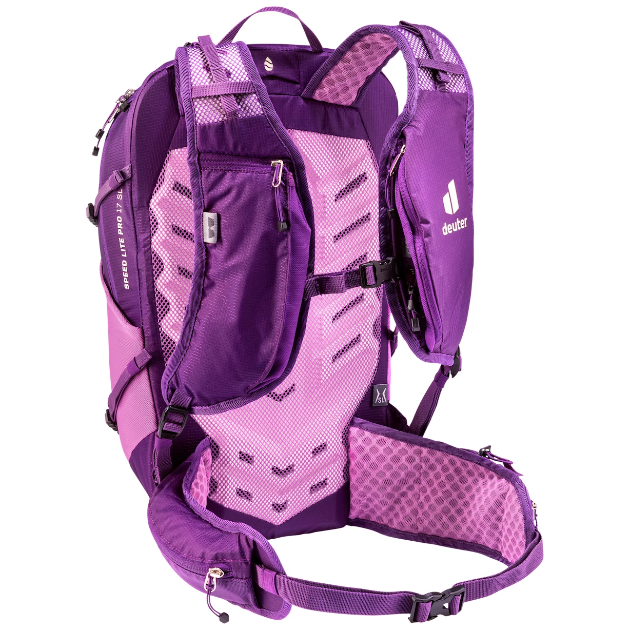 Rucsacul ușor și compact Speed Lite Pro 17 SL de la marca Deuter are o croială pentru femei, adică cu spatele mai scurt, umerii mai îngusti și o croială adaptată anatomiei femeii.