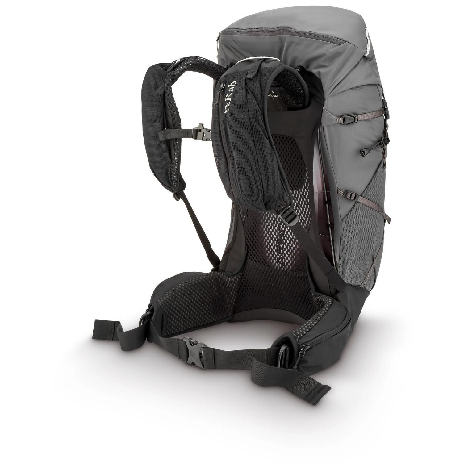 Rucsacul este confecționat din nailon ripstop 140D rezistent, realizat în mare parte din material reciclat. Buzunarele practice de pe bretelele de umăr permit accesul rapid la sticlă, telefon sau baton energetic. Nu lipsește nici buzunarul pentru sistemul de hidratare, sistemul bungee pentru atașarea bețelor de trekking, chingile de compresie și pelerina de ploaie integrată. Datorită acestor detalii, Rab Airox 28 ND este un companion de încredere pentru ture montane solicitante.