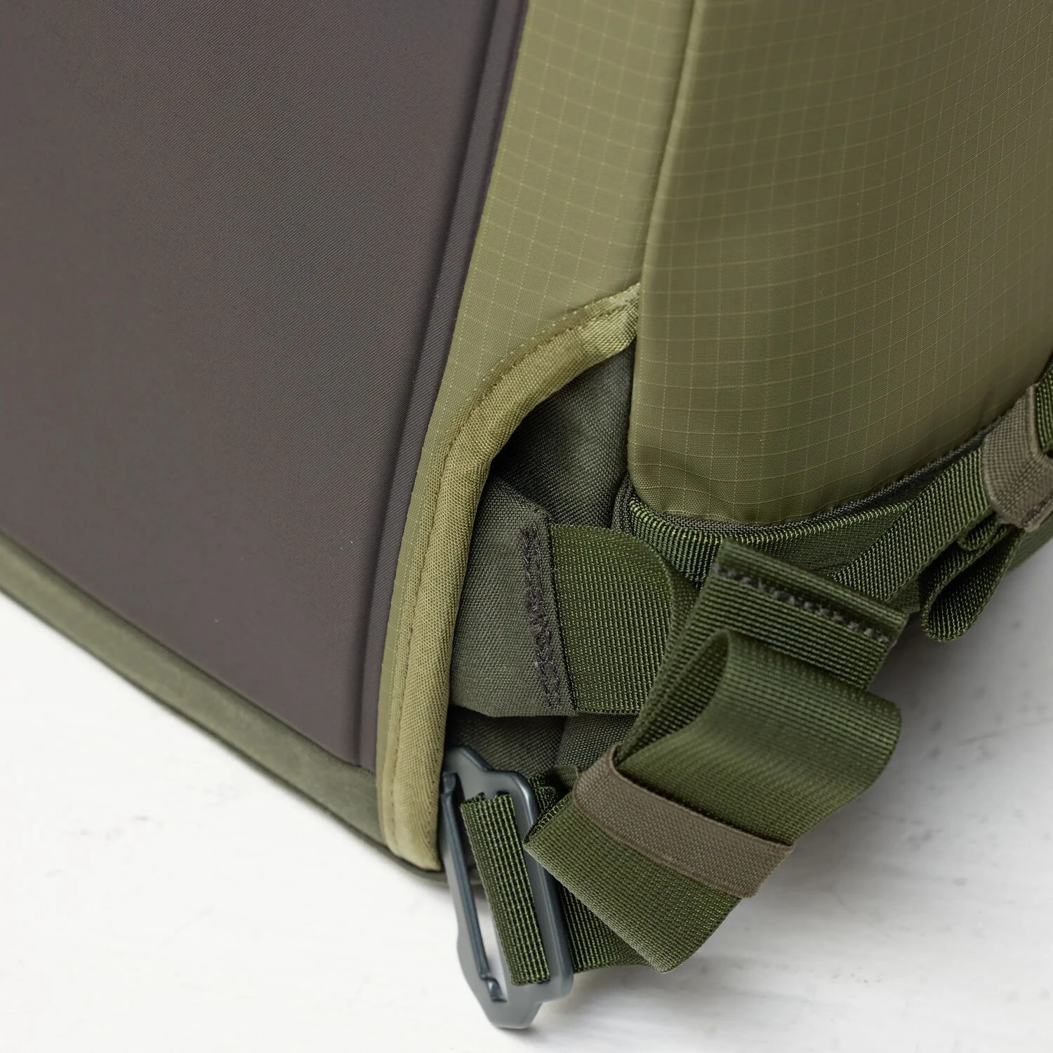 Confortul la purtare este asigurat de panoul dorsal căptușit, bretelele de umăr cu formă ergonomică și centura de șold, care transferă greutatea uniform pe șolduri. Rucsacul este ușor, dar rezistent – fabricat din poliamidă ripstop reciclată 210D cu laminat PU și părți întărite din poliamidă 500D, care sporesc rezistența la abraziune și deteriorare mecanică. Căptușeala este, de asemenea, din poliamidă reciclată 210D, ceea ce asigură o durată lungă de viață chiar și în condiții de utilizare intensă.