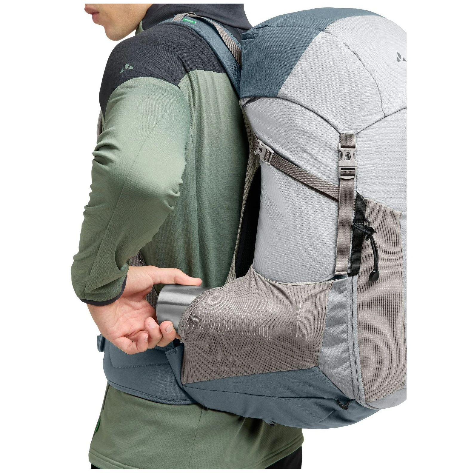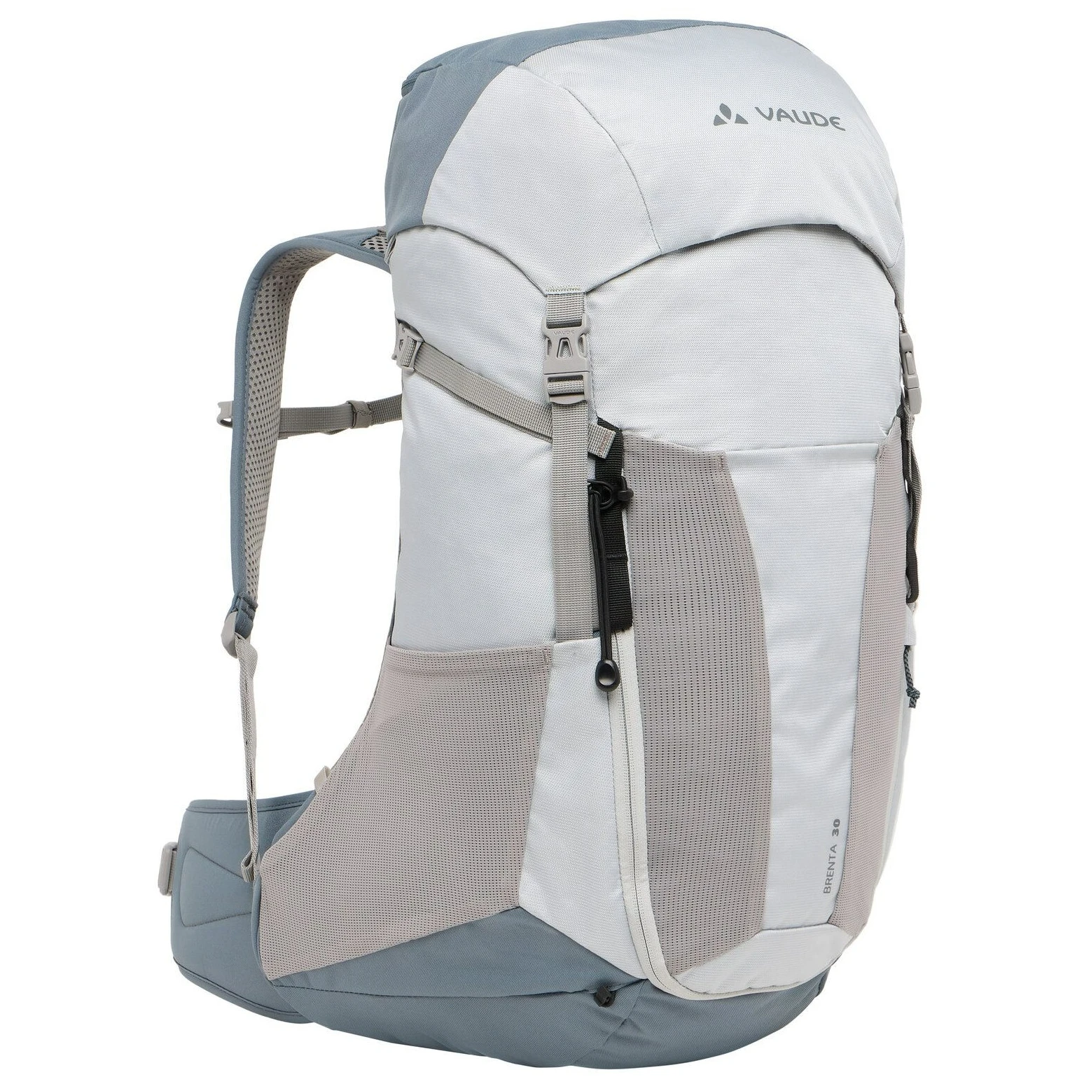 Rucsacul de drumeție Brenta 30 Vaude este ideal pentru excursii solicitante de o zi, cu un volum de 30 de litri, lungime reglabilă a spatelui și bretele ergonomice ErgoShape. Spatele ventilat Aeroflex 3D 2.0 asigură o circulație optimă a aerului și confort, iar cadrul din sârmă de arc stabilizează încărcătura. Funcțiile practice includ acces frontal la compartimentul principal, buzunare laterale elastice, buzunar în capac, suport pentru bețe de trekking, curea de piept cu suport pentru furtunul de hidratare și husă de ploaie integrată detașabilă.