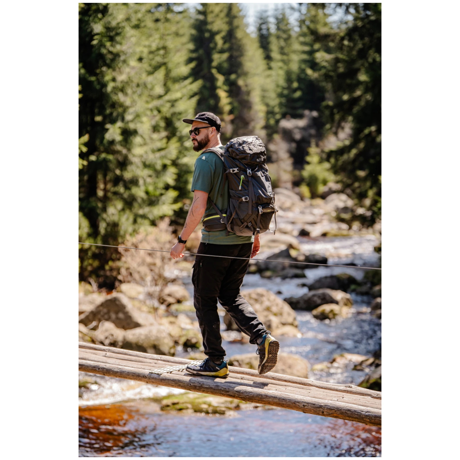Poate fi accesat prin intrarea superioară sau inferioară. Desigur, există două buzunare laterale elastice pentru sticlă și unul frontal ideal pentru o jachetă sau hanorac. Rucsacul include o husă de ploaie integrată, o curea de piept cu fluier și o buclă pentru bețele de trekking. Elementele reflectorizante asigură o bună vizibilitate pe vreme rea sau pe timp de noapte. Dispune și de o husă de ploaie. Este potrivit atât pentru drumeții și ciclism cât și pentru deplasare în oraș.