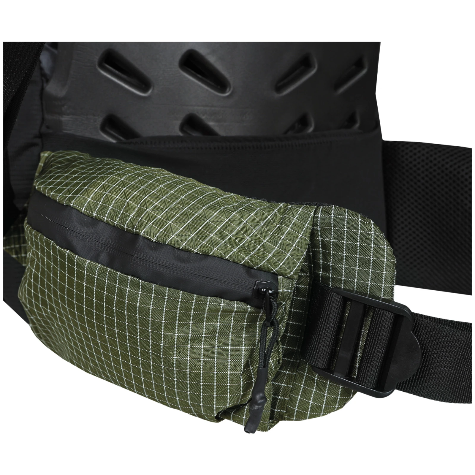 Rucsacul oferă buzunare laterale practice din material elastic, care sunt perfecte pentru sticle și alte echipamente, și buzunare mici pe umeri, care au dimensiunea ideală pentru batoane energizante sau sticle pliabile. În plus, pe laterale există elastice de strângere, care pot fi folosite fie pentru a comprima rucsacul în sine, fie pentru a atașa echipamente suplimentare. Cureaua de șold confortabilă ajută la distribuirea uniformă a greutății rucsacului și este echipată cu un buzunar, care este ideal pentru obiectele mici pe care doriți să le aveți întotdeauna la îndemână, fără a fi nevoie să dați jos întregul rucsac.