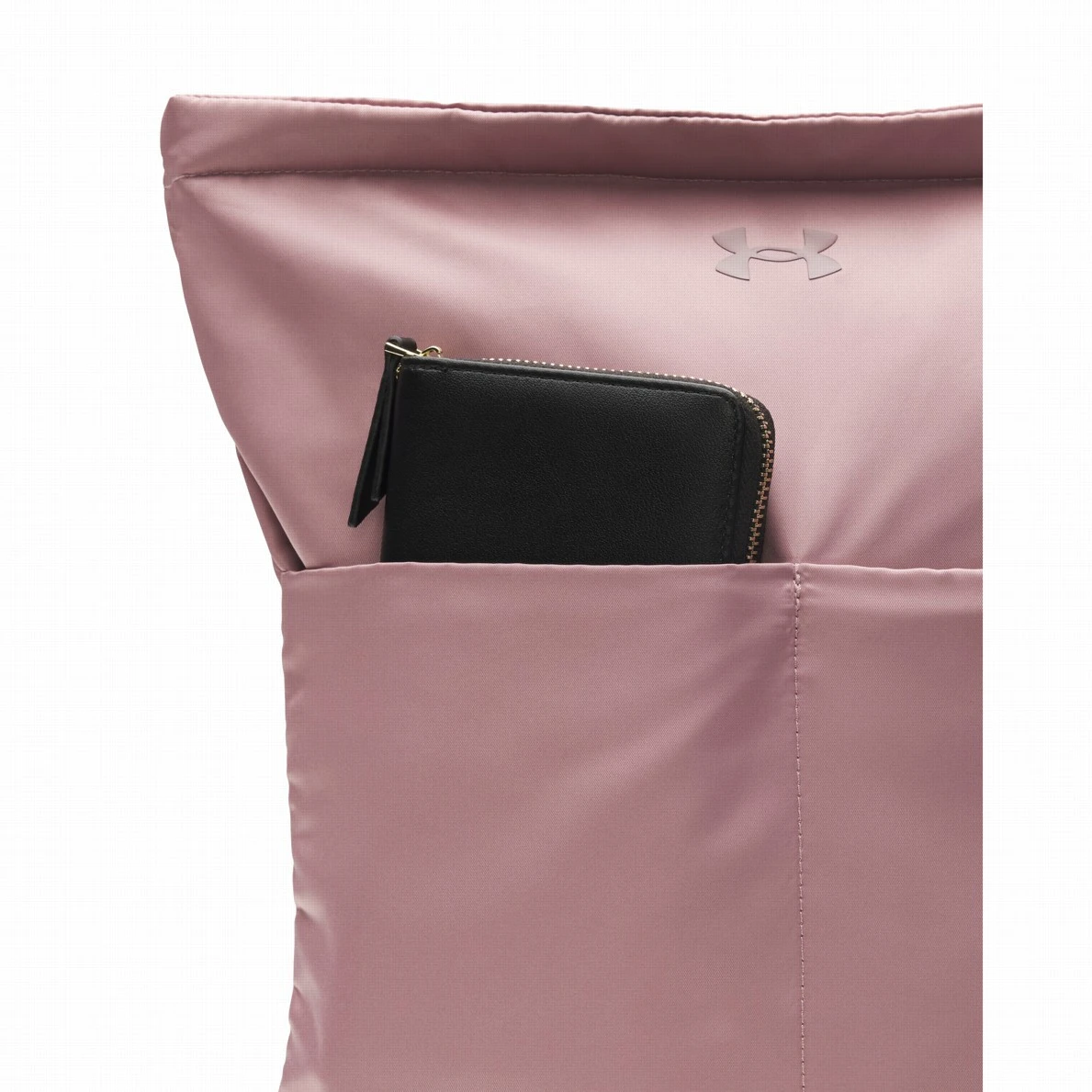 Rucsac Studio Lite pentru femei de la marca Under Armour cu un compartiment principal mare care poate fi închis cu fermoar cu organizare internă și manșon căptușit pentru telefon și laptop sau tabletă (pentru un MacBook Pro® de 16 inchi de până la 16 inchi). Fermoarul este echipat cu o bandă elastică, care poate fi folosită, de exemplu, în păr.