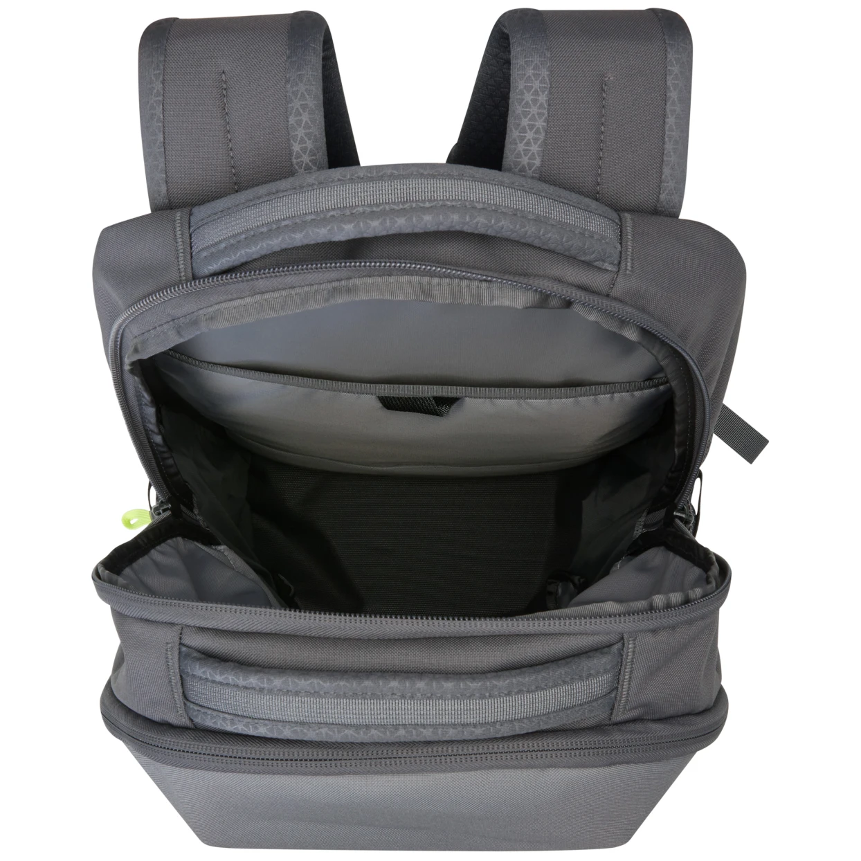 Un buzunar separat căptușit pentru laptop poate conține, de asemenea, documente importante sau câteva cărți. Al doilea buzunar principal permite depozitarea în mod convenabil a hainelor de schimb sau a gustărilor. Compartimentul din față are un organizator pentru obiecte mici, cum ar fi telefonul, creioanele sau tableta și există, de asemenea, un buzunar interior separat cu fermoar. Rucsacul are, de asemenea, buzunare laterale pentru sticle.