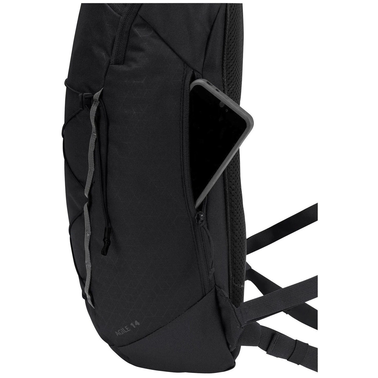 Cu un volum de 14 litri, oferă suficient spațiu pentru o pelerină de ploaie, o gustare, o sticlă de apă și obiecte mici, cum ar fi un telefon sau un portofel. Buzunarele practice – compartiment principal cu fermoar, buzunar lateral cu fermoar, buzunar elastic din plasă și buzunar frontal cu fermoar – facilitează organizarea. Șnurul elastic frontal este folosit pentru a atașa o jachetă, o cască sau bețe de trekking. Cureaua de șold poate fi îndepărtată cu ușurință dacă nu este necesară.
