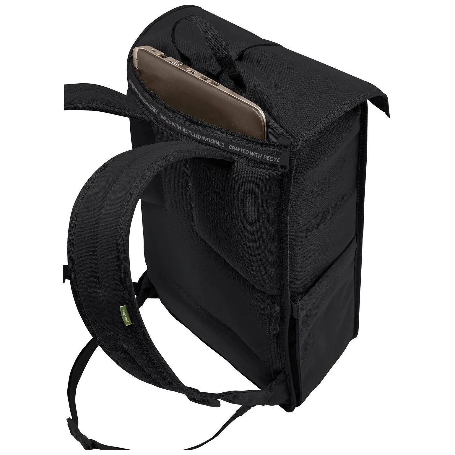Rucsacul Coreway Rolltop 20 Vaude este un partener modern pentru oraș și ciclism. Datorită volumului de 20 de litri și a închiderii practice roll-top, poate conține tot ce ai nevoie pe parcursul zilei. Compartimentul principal oferă suficient spațiu, completat de un buzunar căptușit pentru un laptop de 15,6", suport lateral pentru sticlă și un buzunar mare cu fermoar la spate pentru depozitarea în siguranță a telefonului sau a portofelului.