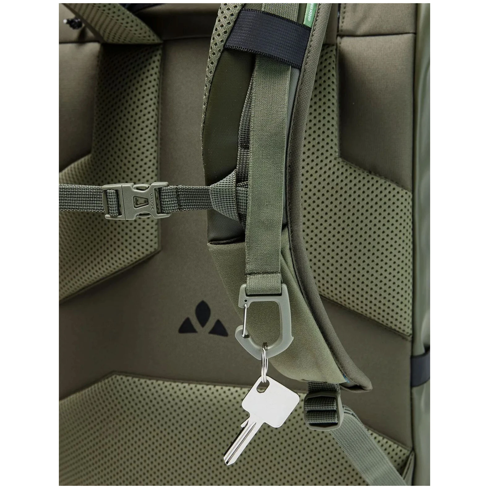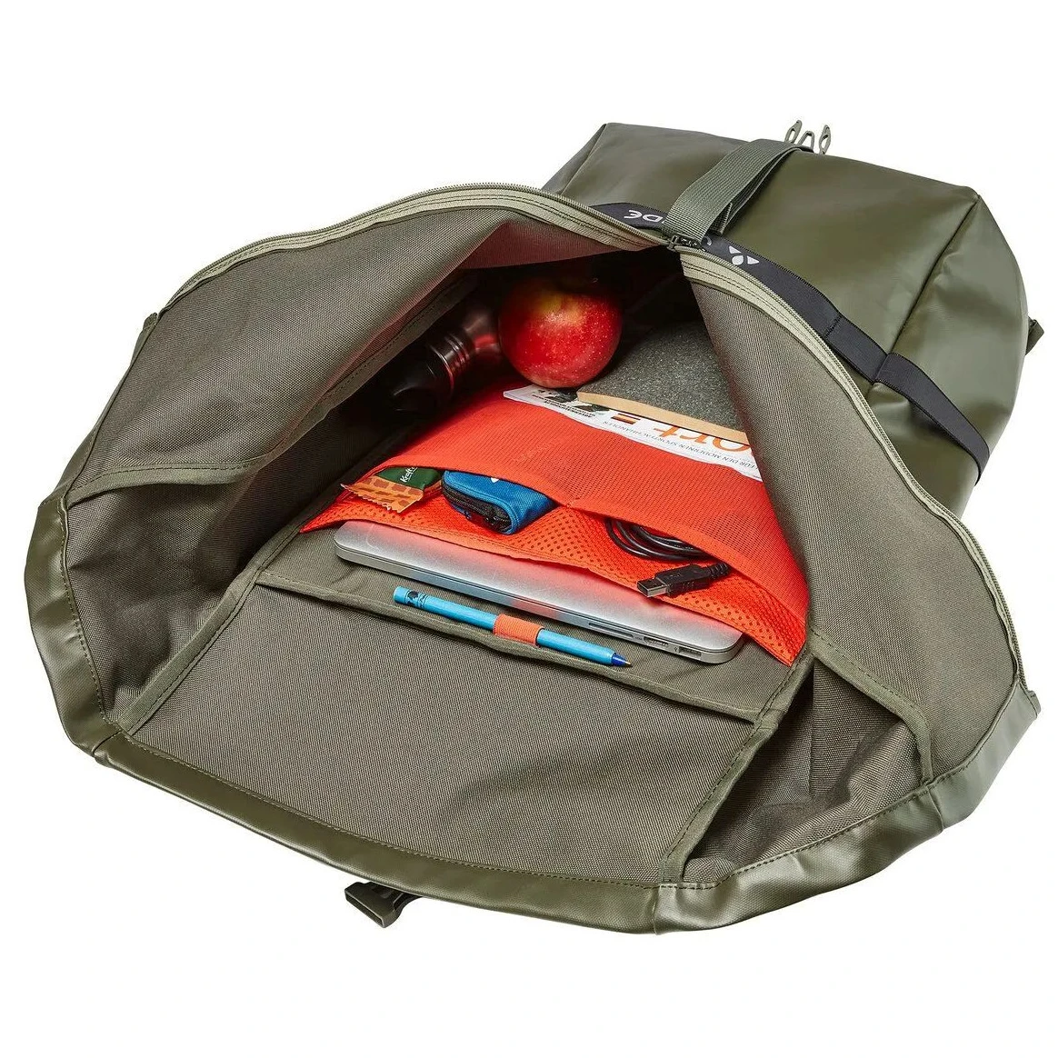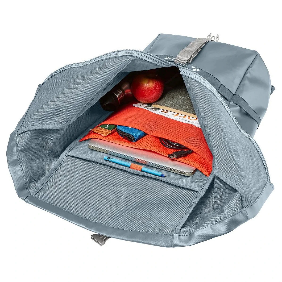 Rucsacul Mineo Backpack 23 de la Vaude este conceput pentru viața urbană și naveta zilnică. Cu un volum de 23 de litri, oferă suficient spațiu pentru toate lucrurile esențiale și combină funcționalitatea cu un design modern minimalist. Este fabricat din poliester reciclat din sticle PET, cu un tratament hidrofug Eco Finish fără PFC. Materialul este rezistent, robust și, în același timp, ecologic. Datorită certificării VAUDE Green Shape și a apartenenței mărcii la Fair Wear Foundation, poți fi sigur de o producție corectă și durabilă.