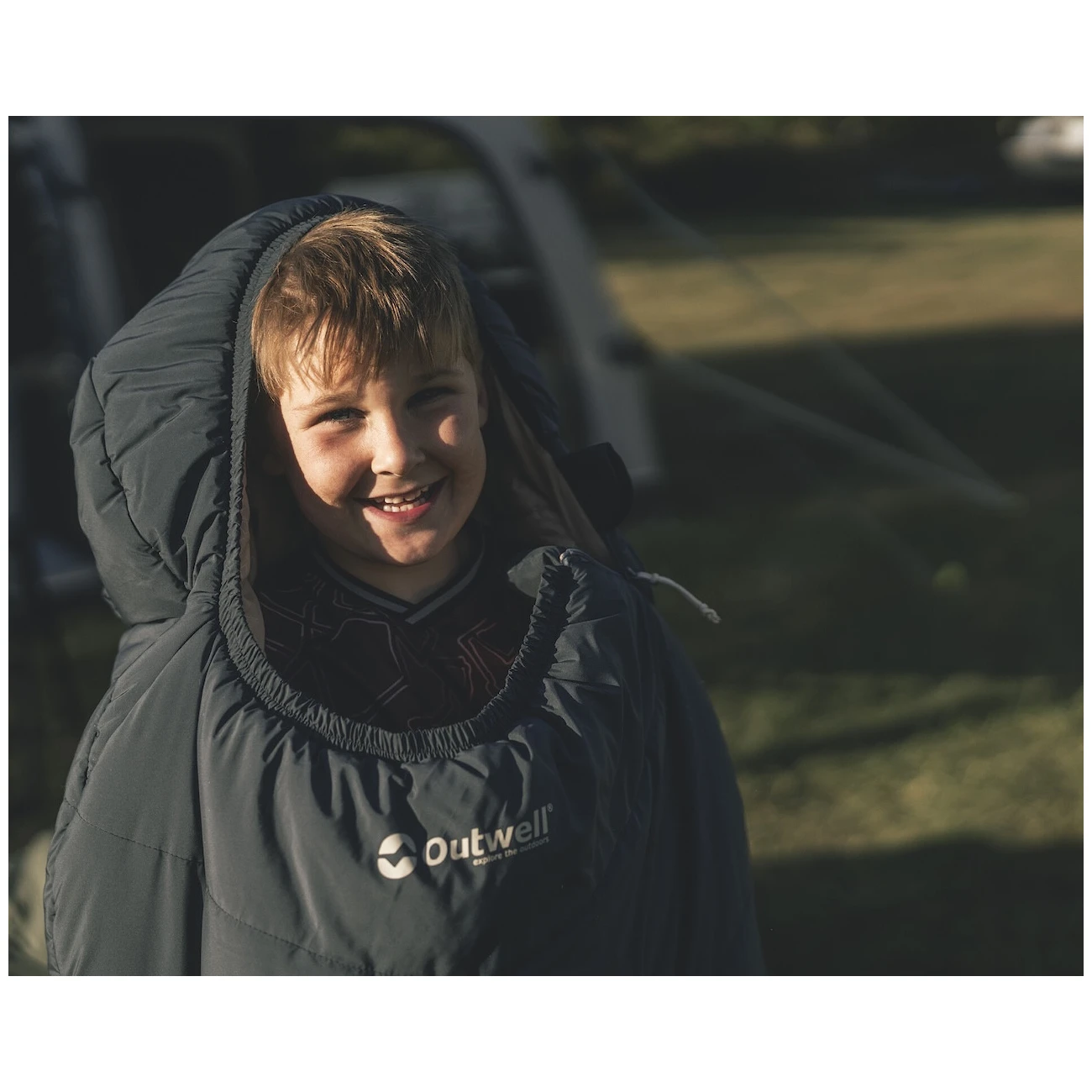 Sac de dormit pentru copii Convertible Junior de la Outwell crește odată cu copilul dumneavoastră. Cu el, copiii dvs. se vor simți ca în pătuțul lor chiar și atunci când sunt în pădure, de la sfârșitul primăverii până la începutul toamnei. Dimensiunea de bază a sacului de dormit pentru o înălțime a corpului de 120 cm poate fi mărită până la 150 cm înălțime a corpului cu ajutorul fermoarului.