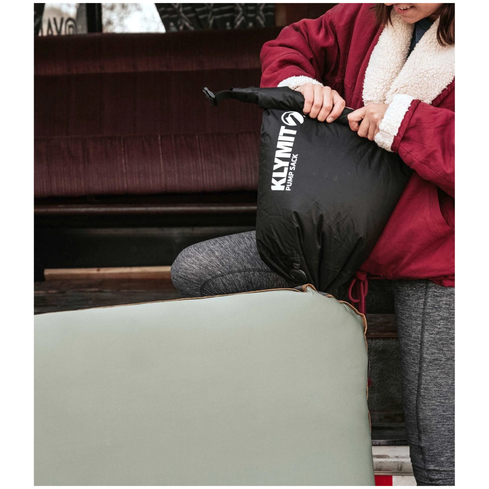 Este foarte simplu de utilizat. Este suficient să conectați sacul de pompare Klymit Flip Valve la supapa saltelei, să prindeți aer, să rulați spre supapă și să împingeți aerul în interior. În câteva clipe aveți un loc confortabil pentru dormit.