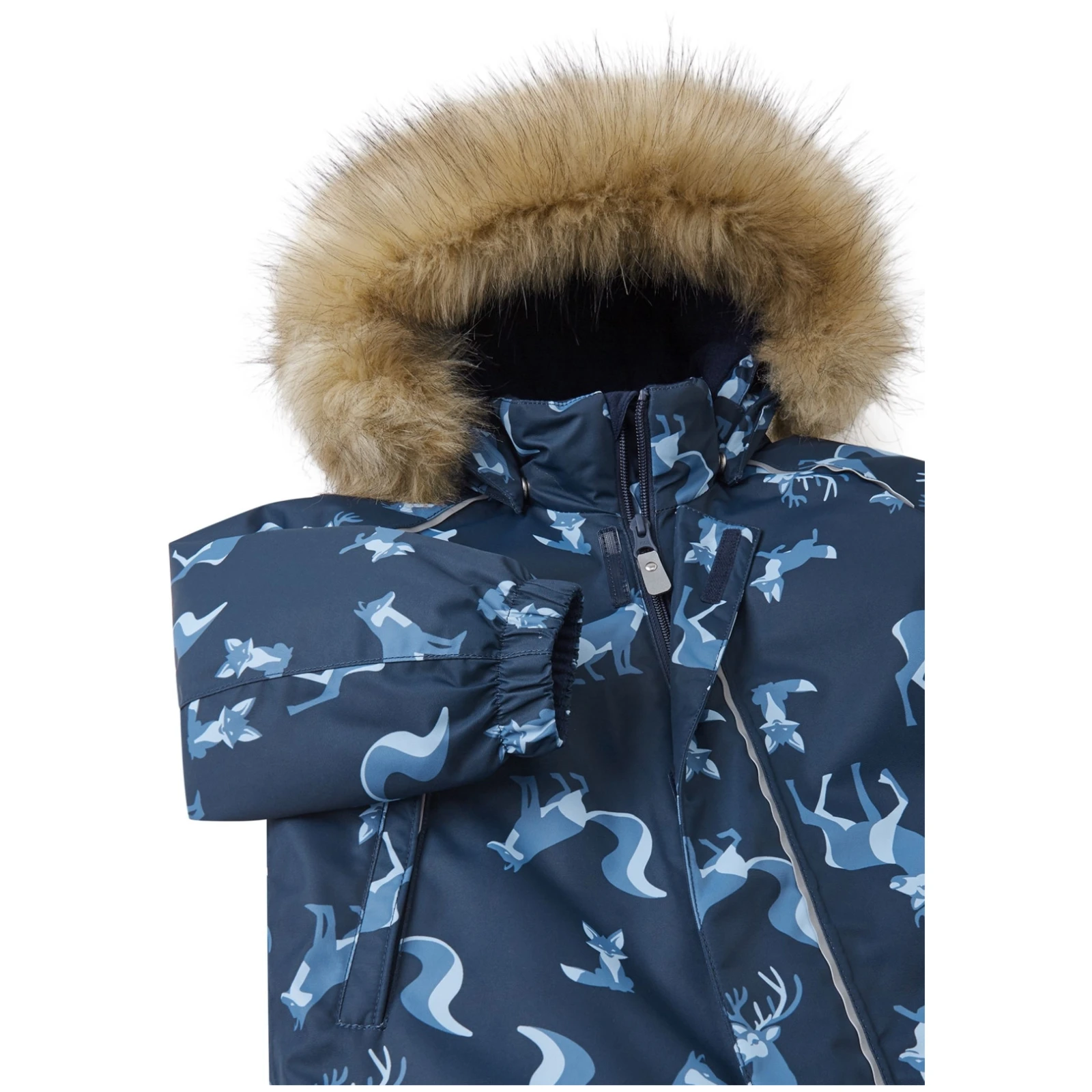 Salopeta pentru copii Lappi de la Reijma este impermeabilă și ideală pentru cei mici pe timp de iarnă. Această salopetă este câștigătorul testului pentru anul 2021! Fermoar lung pentru o îmbrăcare simplă. Are o margine detașabilă la glugă din blăniță artificială.