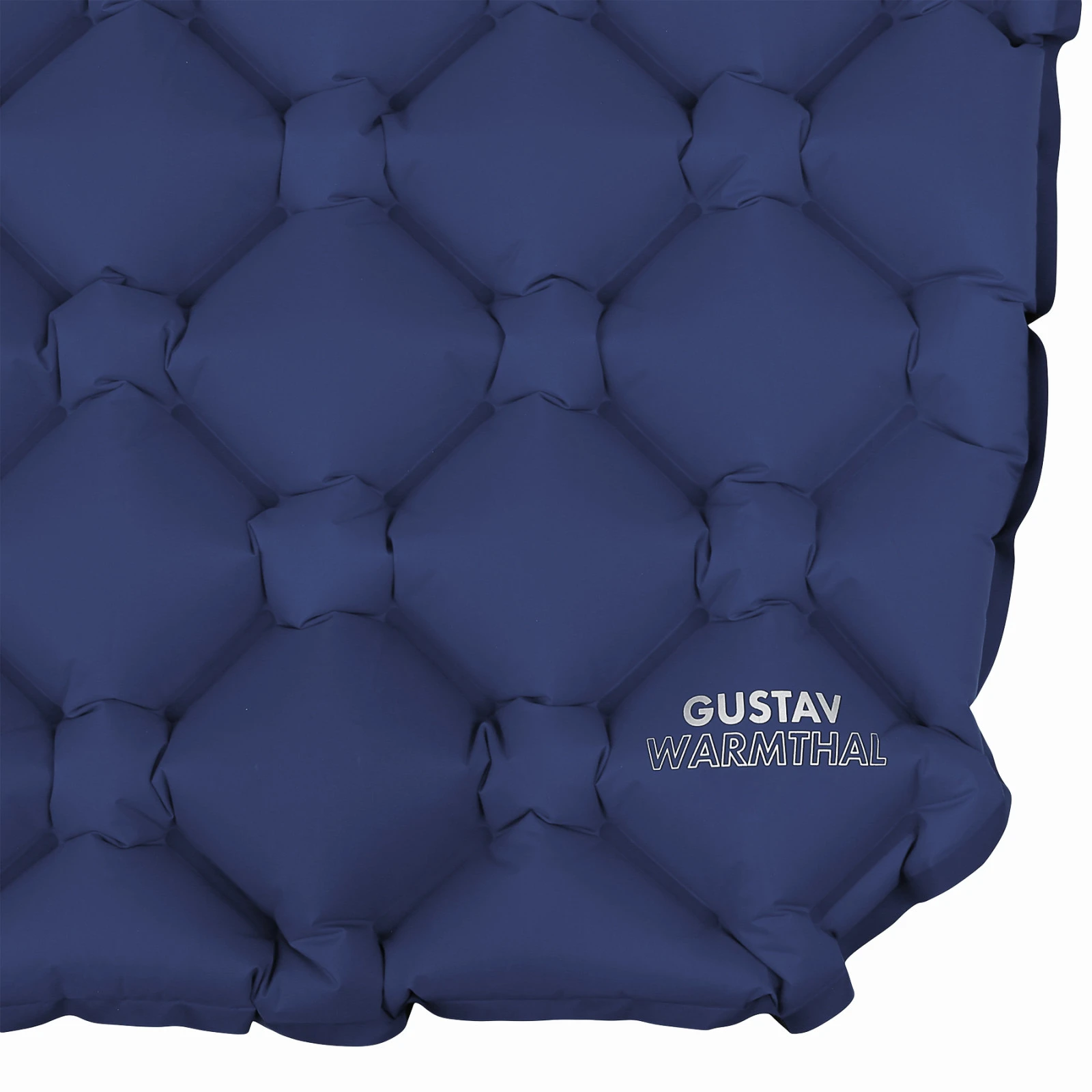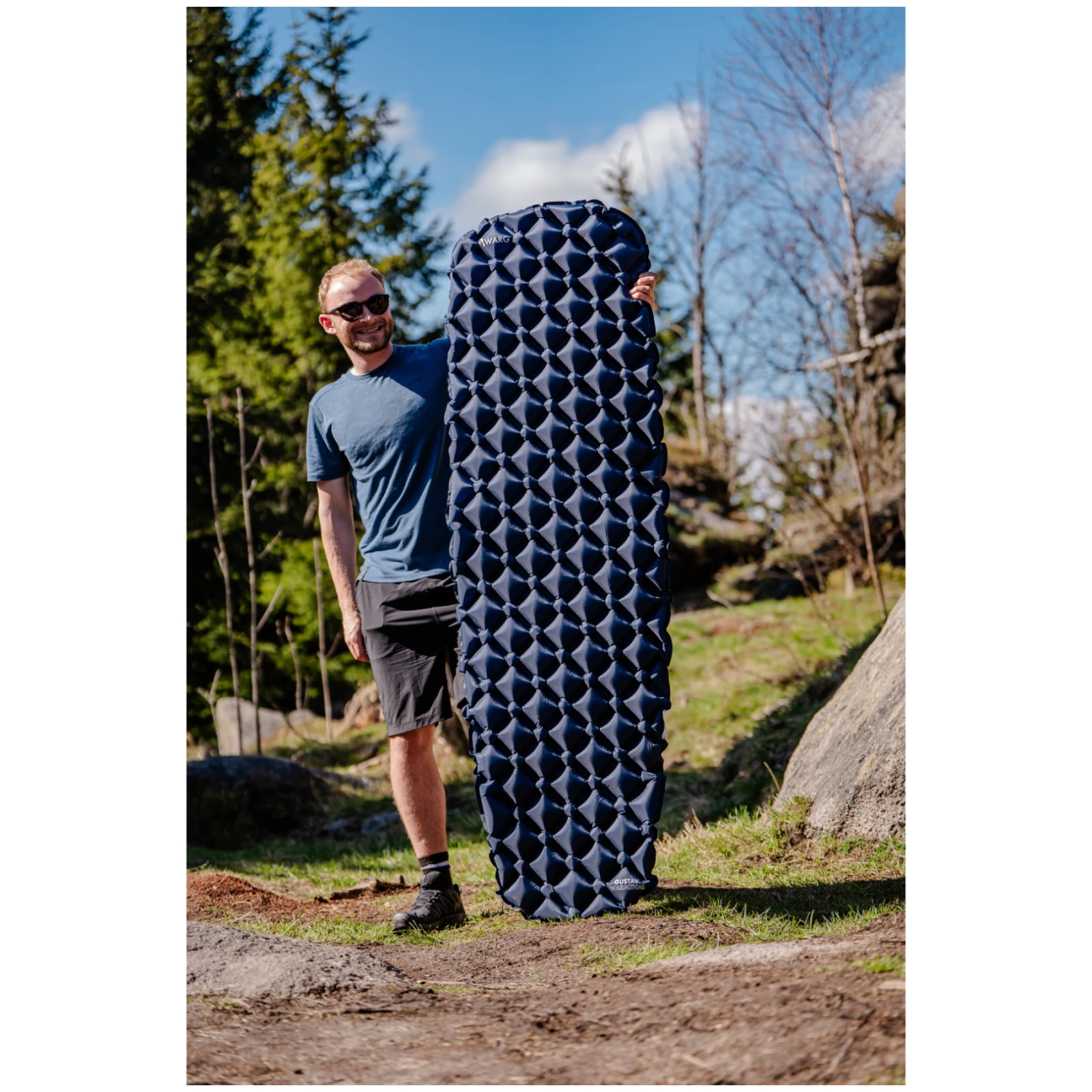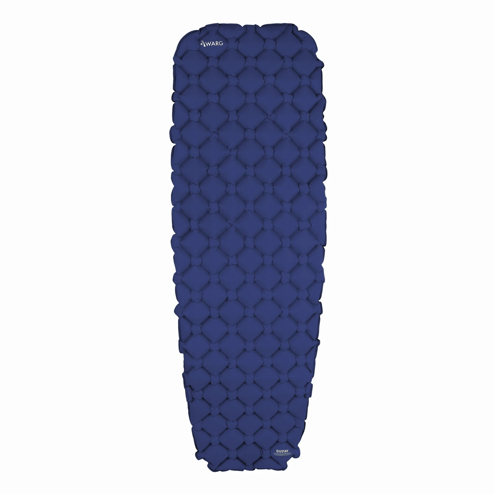 Warg Gustav, cu doar 540 g, este una dintre cele mai ușoare saltele gonflabile de pe piață. Construcția cu cavități asigură o stabilitate ridicată și o senzație de suprafață plană pentru un confort sporit. Sacul de dormit umple cavitățile individuale ale saltelei, ceea ce crește confortul termic. În același timp, se poate umfla și împacheta rapid salteaua.