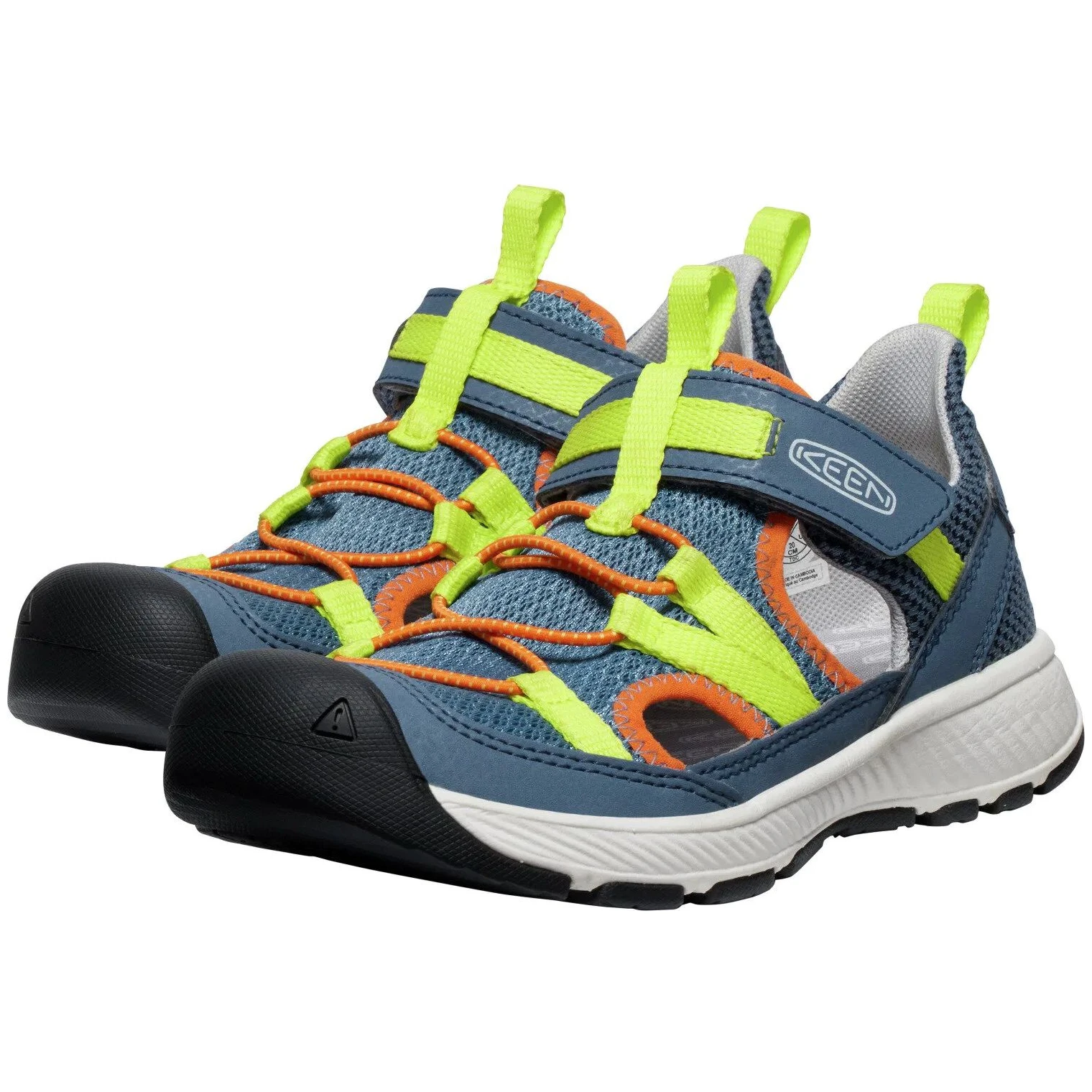 Sandalele pentru copii Motozoa de la brandul Keen au o parte superioară realizată dintr-o combinație de material sintetic și textil, completată și de o căptușeală din plasă. Pentru confort pe tot parcursul zilei, există o talpă intermediară EVA pentru un mers lin și un branț din PU care susține bolta plantară. În plus, sandalele au o talpă din cauciuc, care asigură susținere pe diferite suprafețe datorită crampoanelor multidirecționale. Se fixează rapid cu ajutorul sistemului de înșiretare cu șnur și închidere reglabilă. Beneficiază de un tratament cu tehnologia ecologică ECO ODOR CONTROL, reducând astfel mirosul.