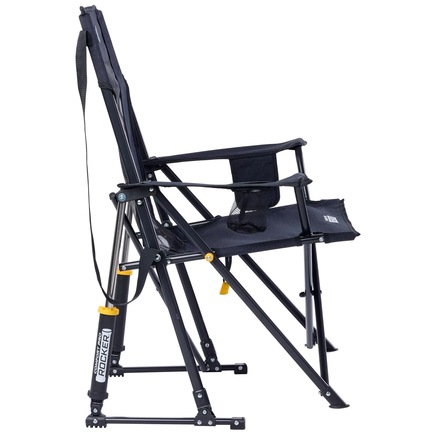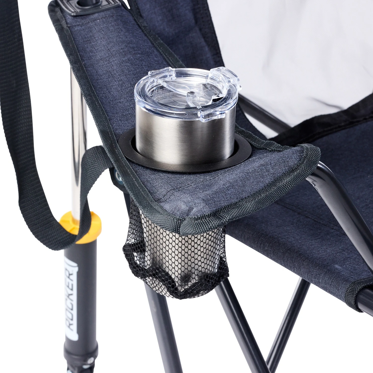Cadrul robust din oțel cu acoperire cu pulbere asigură stabilitate și durată lungă de viață, în timp ce segmentul din plasă de pe spătar ajută la circulația optimă a aerului, astfel încât corpul să rămână confortabil chiar și în zilele călduroase. Suportul pentru băuturi și buzunarul lateral mențin obiectele importante la îndemână, astfel încât să vă puteți bucura pe deplin de momentele de liniște fără a fi nevoie să vă ridicați.