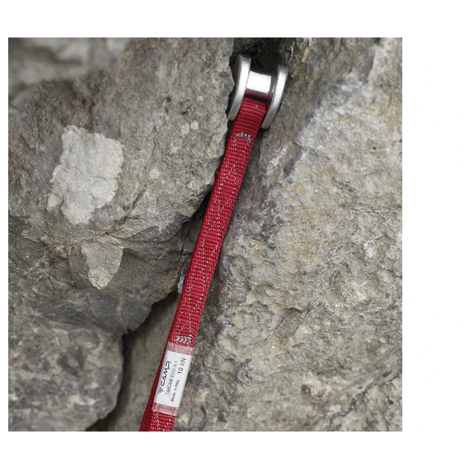 Setul de nuci de escaladă Camp Tricam Evo este unul dintre instrumentele clasice ale fiecărui alpinist clasic. Datorită formei triunghiulare, sunt foarte variabile și țin în fisurile orizontale atât orizontal, cât și vertical. Pot fi folosite și pentru asigurarea protecției în găuri și locuri unde nimic altceva nu se potrivește, sau chiar în fisuri înghețate. Sunt foarte ușoare datorită fixării doar pe buclă. În plus, bucla este întărită cu o cusătură în partea superioară, astfel încât fixarea cu o singură mână să fie mai ușoară și crește rezistența la abraziune pe margini. Oferă o modalitate activă și două pasive de plasare. A doua plasare pasivă este posibilă datorită capului consolidat în formă de pană și poate fi plasată și pe lățime.