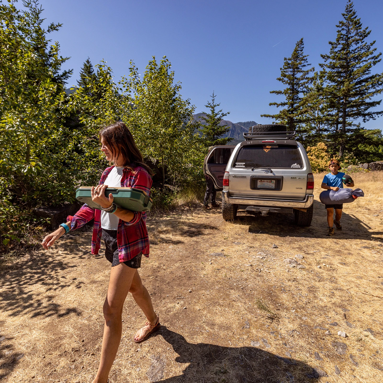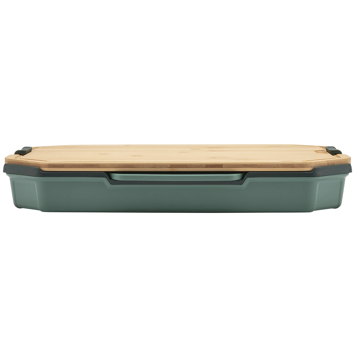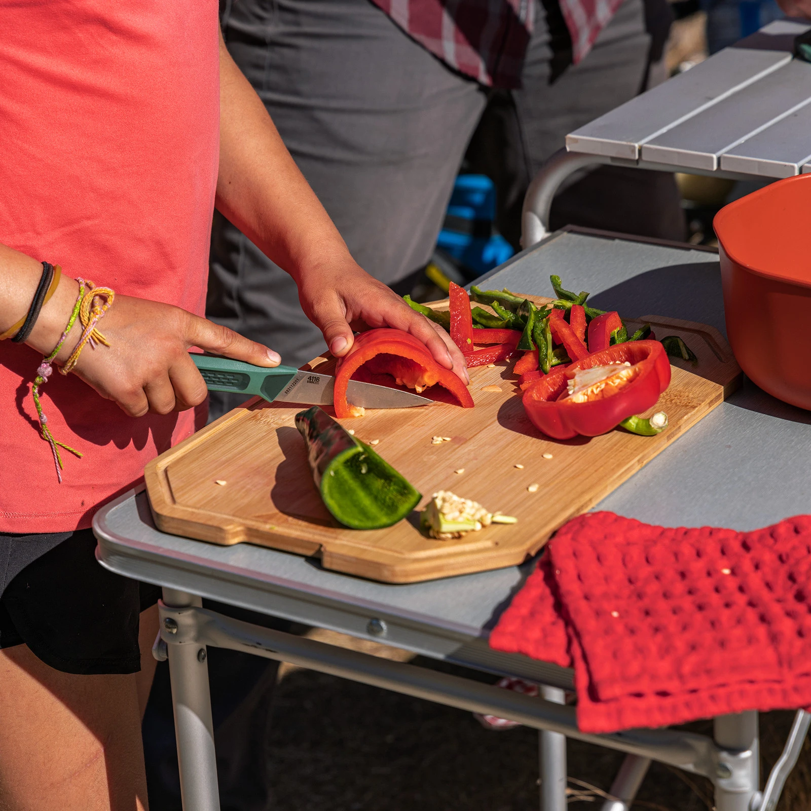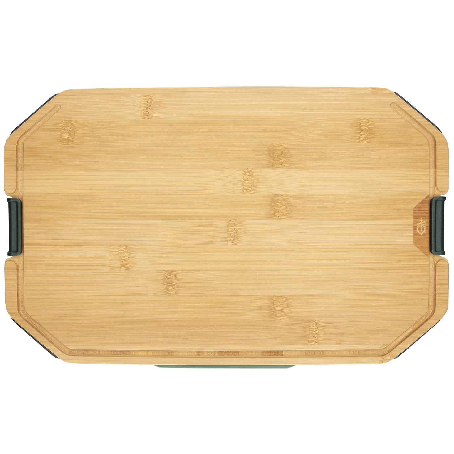 Setul Gerber Compleat Cutting Board include două plăci de tăiat pe ambele fețe din bambus și polipropilenă, un cuțit de curățat de 8,25 cm, un cuțit de bucătărie de 15 cm și o tavă de depozitare. Totul se împachetează în dimensiuni compacte.