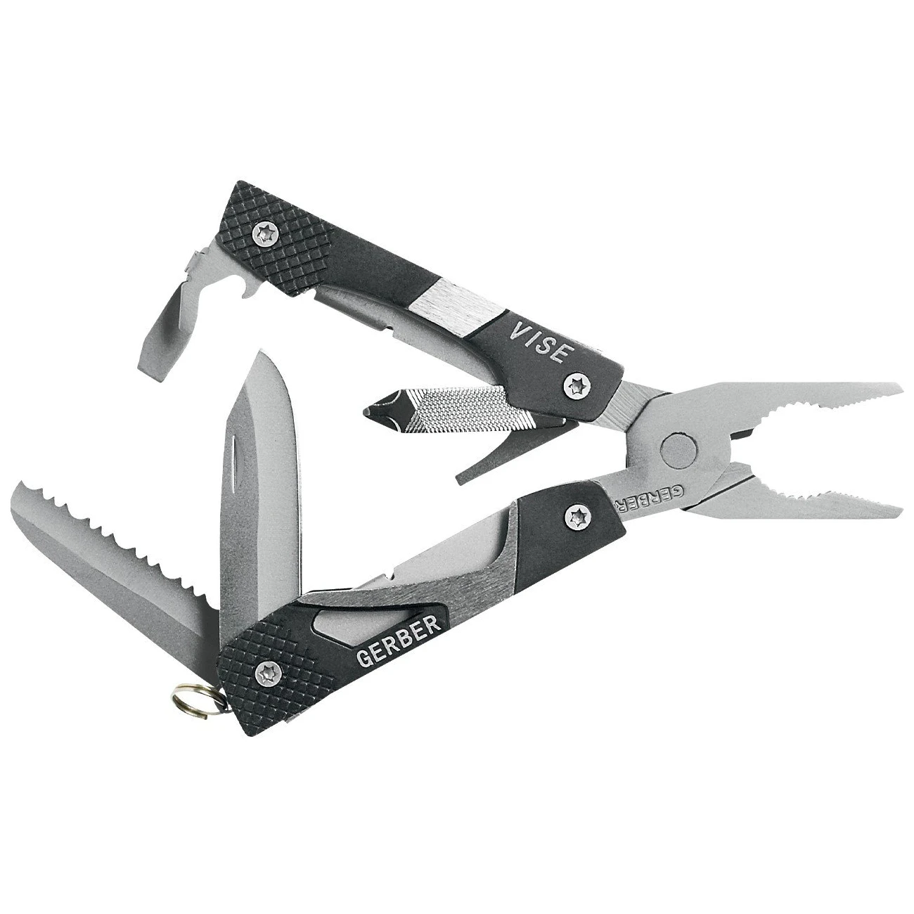 Cleștele multifuncțional Gerber Vise combină dimensiuni reduse și utilitate mare. Acest multitool poate fi ușor prins de chei și purtat cu dvs. în orice moment. Uneltele din multitool sunt fabricate din oțel inoxidabil și toate pot fi utilizate fără a deschide cleștii. Corpul este fabricat din aluminiu anodizat negru, care oferă rezistență și ușurință.