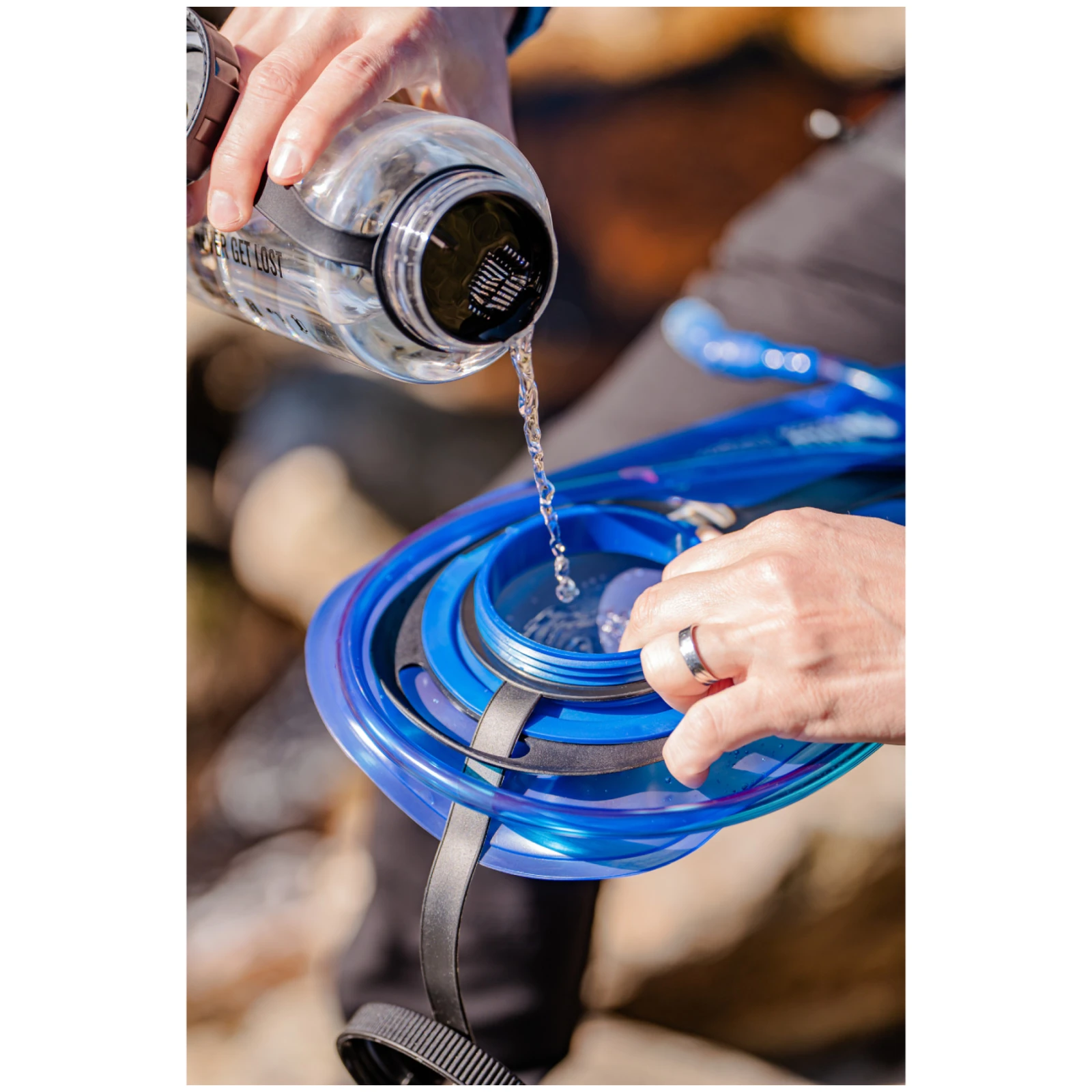 Sistemul de hidratare Zulu Reservoir, cu umplere laterală, are o capacitate de doi litri de lichid și este ideal pentru a menține regimul de consum al lichidelor în timpul drumețiilor sau al mersului pe bicicletă. Este foarte rezistent la abraziune și foarte practic datorită închiderii laterale largi. Bineînțeles, furtunul și rezervorul în sine sunt antibacteriene.