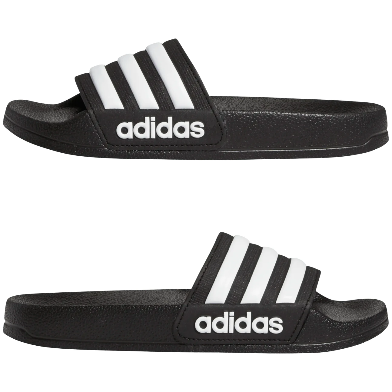 Papucii pentru copii Adidas Adilette Shower K sunt potriviți pentru purtare la piscină și pentru plimbările pe plajă.
