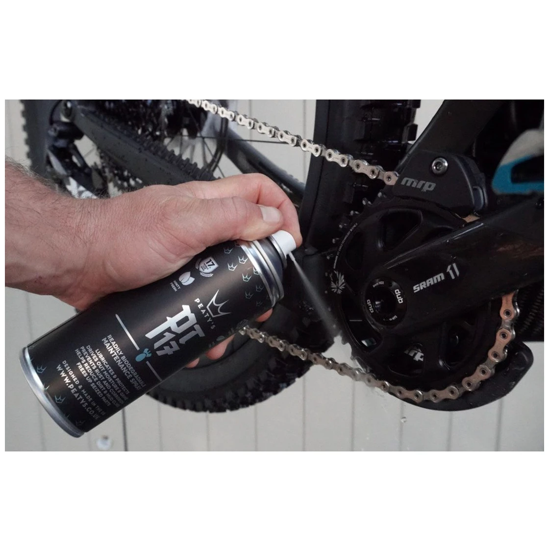 Peaty´s PT 17 este un spray de întreținere potrivit pentru întreținerea de rutină de bază a bicicletei dvs. fără conținut de PTFE, ceea ce îl face ecologic.