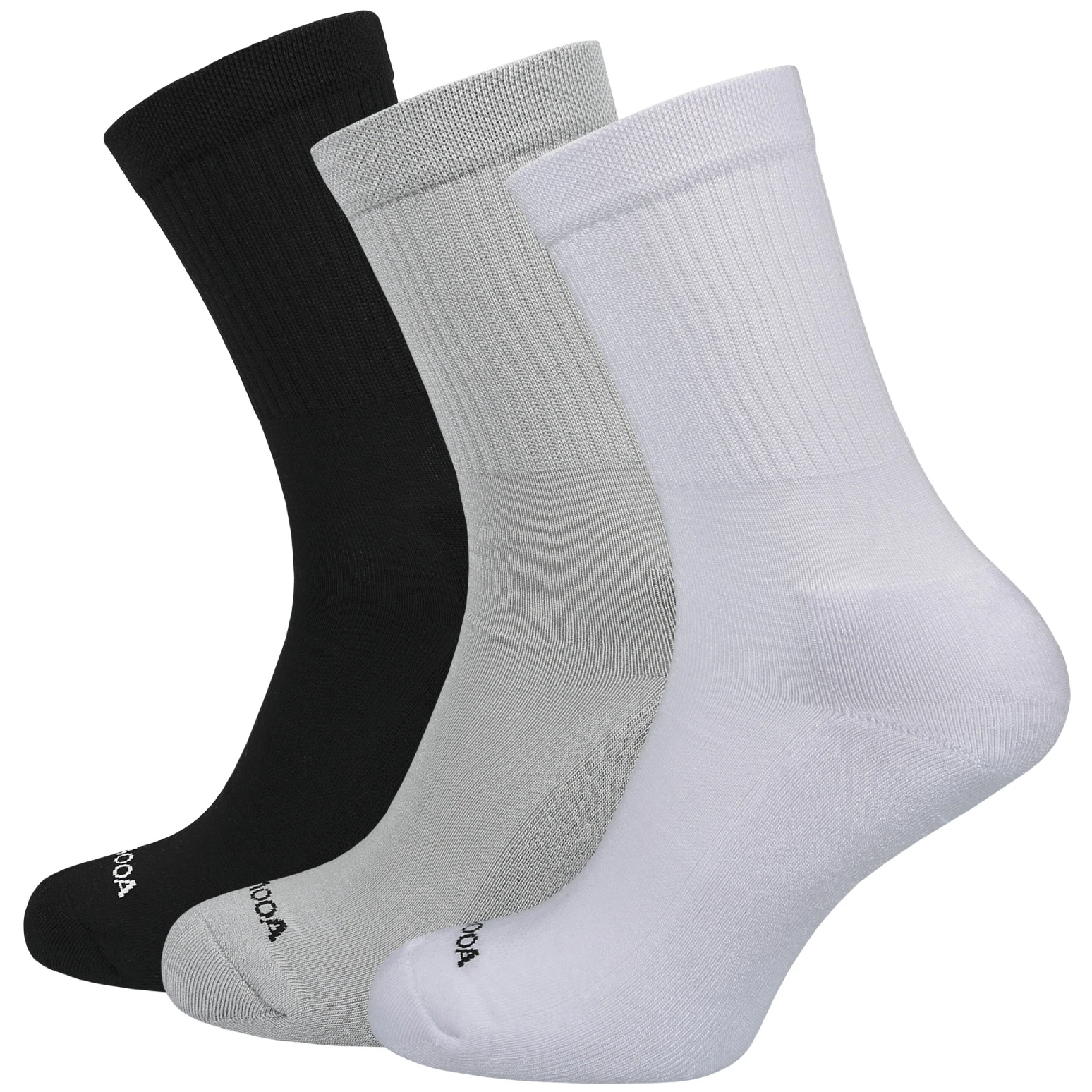 Șosetele MOOA Essential în pachet practic de trei sunt alegerea ideală pentru purtarea de zi cu zi în oraș, dar și în timpul activităților recreative în natură. Croiala mai înaltă și tivul elastic plăcut asigură o fixare perfectă pe picior, fără a strânge neplăcut.