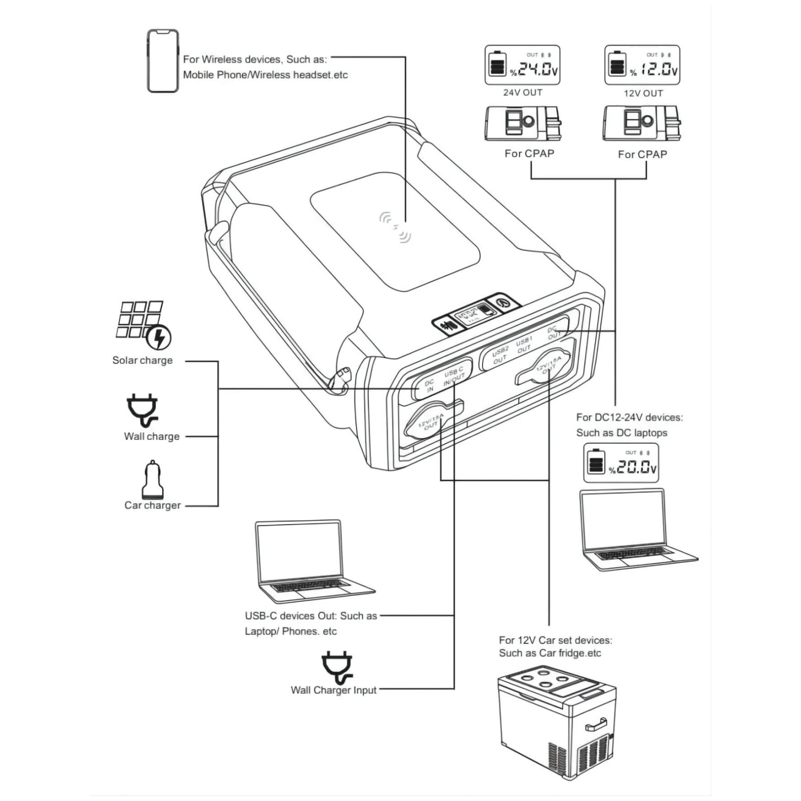 Stația unică de încărcare Gosun cu o capacitate enormă de 307,2 Wh / 96.000 mAh este suficient de mare pentru a vă încărca smartphone-ul în fiecare zi timp de aproape o lună. Stația de alimentare este echipată cu un număr mare de conectori pentru diferite moduri de încărcare a dispozitivelor dumneavoastră la 12/24V.