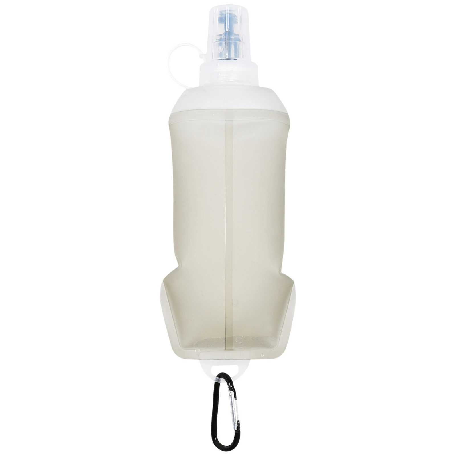 Sticla este fabricată din material 100% TPU, care este flexibil, rezistent și, în același timp, fără BPA, fiind astfel potrivită pentru utilizare regulată. După golire, poate fi ușor pliată și ocupă un spațiu minim, lucru pe care îl veți aprecia în timpul mișcărilor mai lungi și în spații restrânse. Este echipată cu un muștiuc (bite valve) cu capac blocabil, care previne scurgerile accidentale de lichid. Datorită acestui lucru, băutul este rapid și confortabil chiar și în timpul mișcării. Este inclusă și o carabină detașabilă, care permite atașarea ușoară la rucsac sau echipament. În plus, sticla este compatibilă cu veste de alergare, unde poate fi depozitată convenabil în buzunarele frontale.