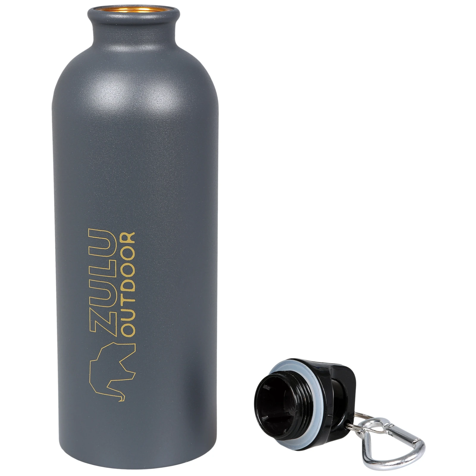 Sticla include un capac filetat fără BPA, care asigură o închidere sigură. Un detaliu practic este, de asemenea, carabina de pe capac, datorită căreia sticla poate fi atașată ușor la rucsac sau la echipament.