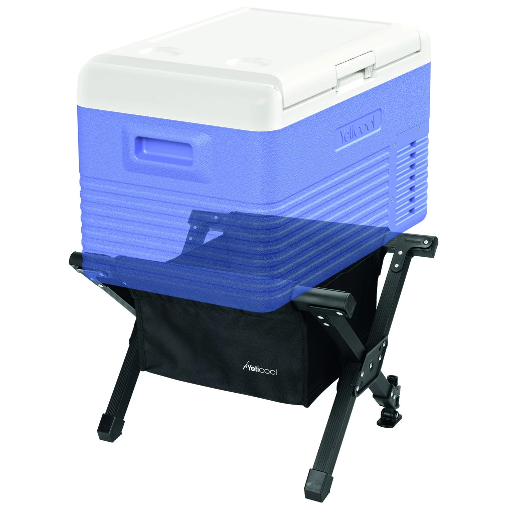 Suportul pliabil pentru frigider poate susține în siguranță diferite tipuri de lăzi frigorifice. Barele de susținere sunt învelite într-un strat subțire de spumă, care protejează lada de zgârieturi.