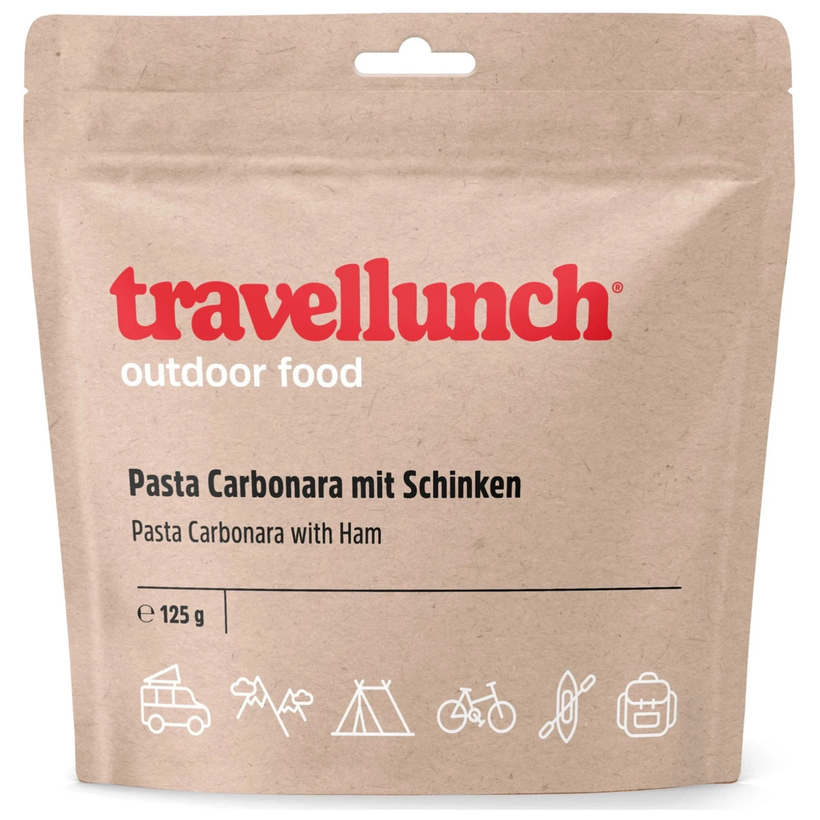 Mâncarea deshidratată Travellunch Spaghetti Carbonara conține toate substanțele importante pentru corpul uman și are un gust deosebit.