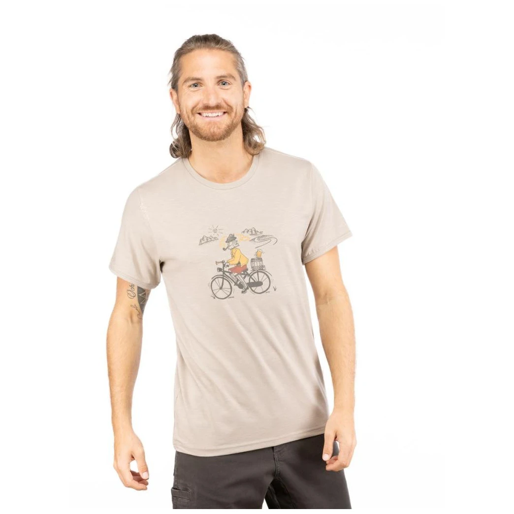 Fie că este vorba de o excursie provocatoare la peretele de cățărare sau la cafenea pentru a sta cu prietenii, tricoul super-confortabil Tyroleaan Trip de la Chillaz este alegerea perfectă. Fibrele naturale Tencel sunt combinate în mod unic cu bumbacul și Lycra pentru a regla umiditatea și a reduce dezvoltarea bacteriilor. Calitatea este palpabilă, iar croiala este concepută pentru a se potrivi majorității figurilor masculine.
