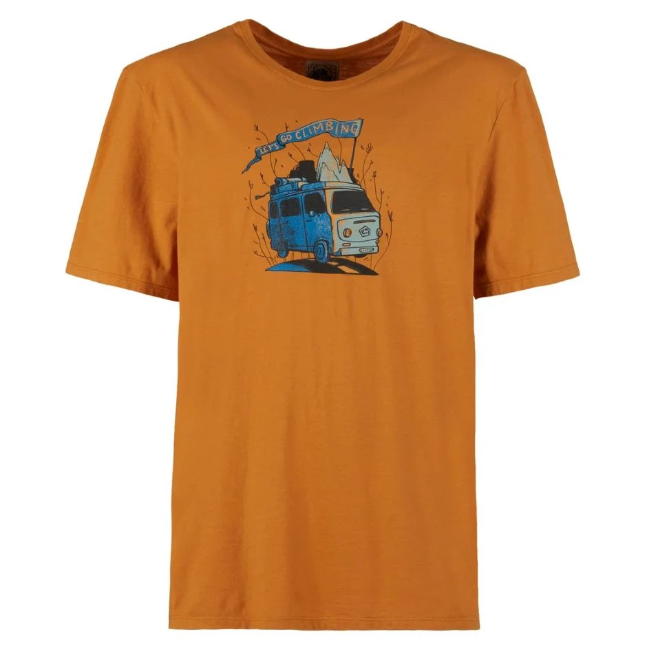 Tricou modern cu mânecă scurtă pentru bărbați Furgo Men's de la firma E9 este fabricat din bumbac 100% organic. Tricoul are un imprimeu stilat pe piept. Este fabricat în Italia, cu poluare minimă a mediului și cu accent pe un design extravagant, design unic și confort în timpul cățărării.