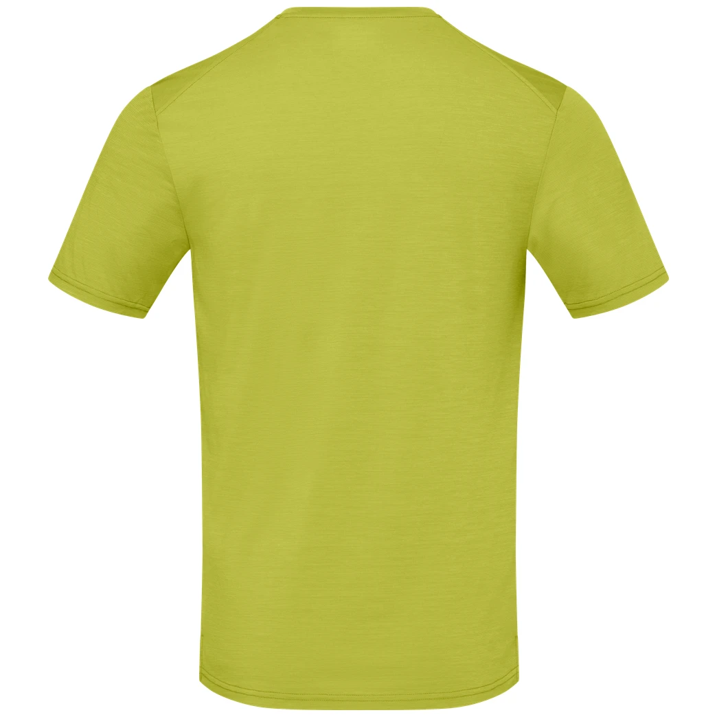 Materialul este un amestec de 47% lână merino, 33% poliester reciclat și 20% poliester. Datorită acestei combinații, tricoul este plăcut la atingere, elimină eficient umiditatea și se usucă rapid, ceea ce vei aprecia în condiții meteo schimbătoare sau în deplasare. Lâna merino reglează natural temperatura și este rezistentă la mirosuri neplăcute, fiind potrivită chiar și pentru evenimente de mai multe zile, cu posibilități limitate de spălare. Poliesterul reciclat reprezintă, de asemenea, o alegere mai ecologică în comparație cu materialul virgin.