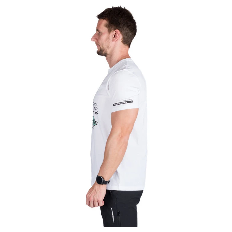 Tricou barbatesc modern și ecologic Northfinder Birger. Materialul moale, croiala confortabilă și un motiv montan atractiv fac din acest tricou partenerul ideal pentru călătorii.