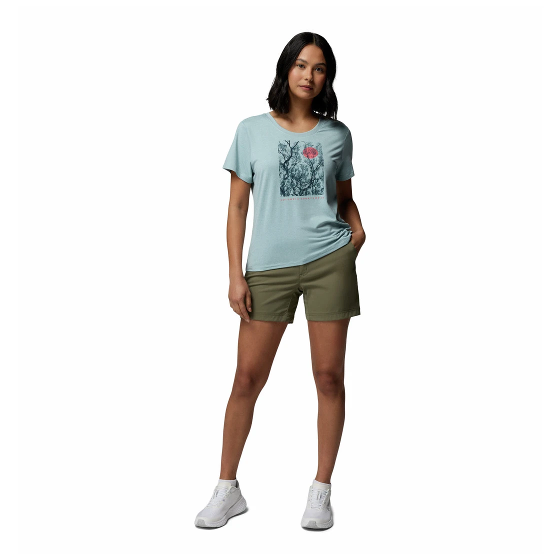 Mergi în drumeții sau ieși în oraș cu acest tricou funcțional confortabil pentru femei Columbia, conceput pentru un stil de viață activ. Materialul ușor elastic se adaptează mișcărilor tale și asigură confort pe tot parcursul zilei - fie că cucerești trasee montane, fie că te plimbi pe străzile orașului.