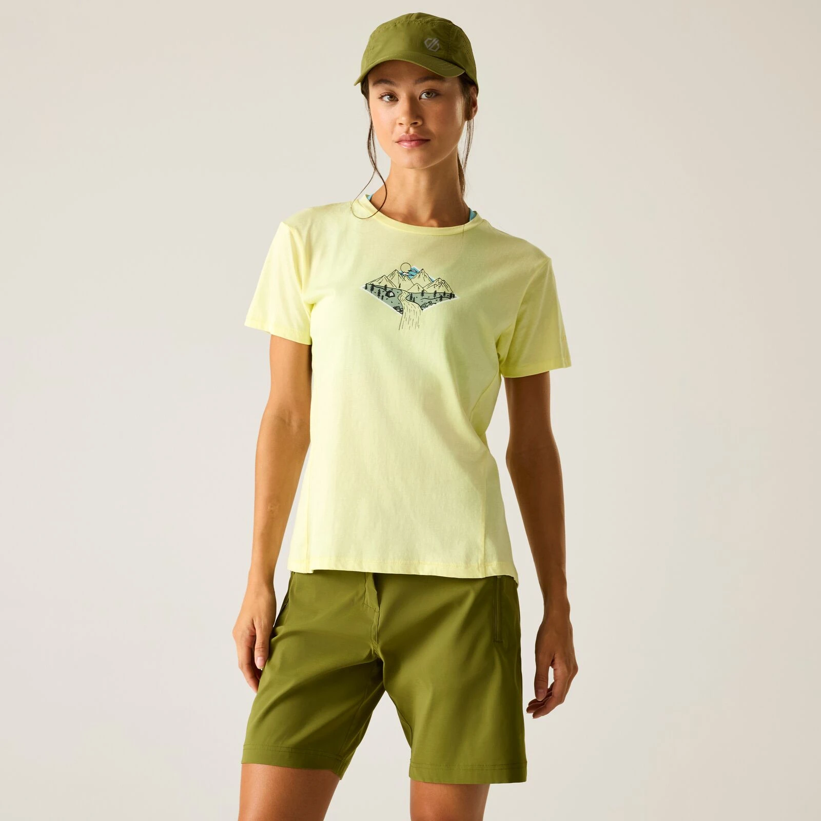 Îți va plăcea tricoul de damă cu mânecă scurtă Dare 2b Tranquility III Tee, cu imprimeu pe partea din față și croială lejeră, pentru purtarea de zi cu zi.