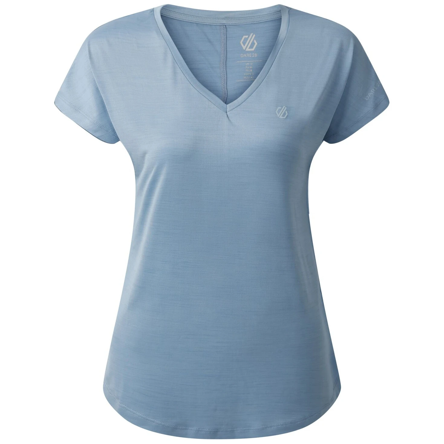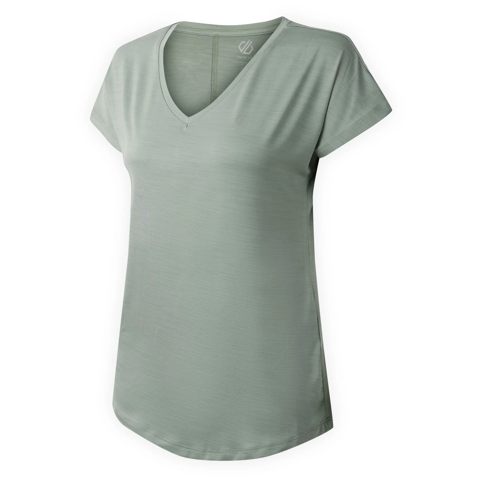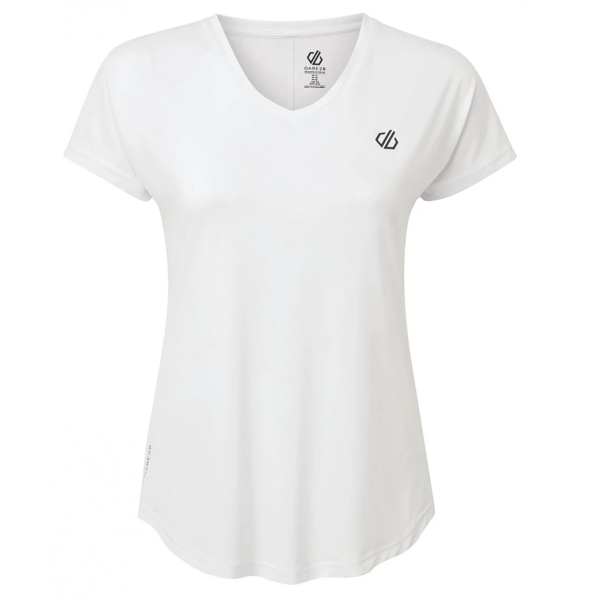 Confortabilul tricou pentru femei Dare 2b Vigilant Tee pentru femei se usucă rapid și are performanțe bune de ștergere. Veți aprecia tratamentul antibacterian suplimentar împotriva mirosurilor.