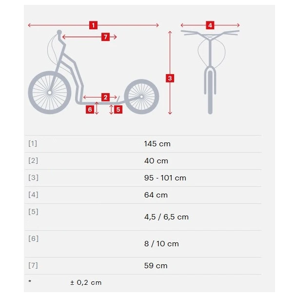 Furca spate cu două poziții care permite reglarea înălțimii suportului pentru picioare economisește piciorul de sprijin, sporește plăcerea de a conduce și numărul de kilometri parcurși. Mânerele cu formă ergonomică, cu o suprafață plăcută, se potrivesc bine în mână. Trotineta este pregătită pentru montarea apărătorilor de noroi și a două suporturi pentru sticle, pe care le puteți achiziționa, la fel ca un set de mushing, un scaun pentru copii, o geantă, un suport pentru telefonul mobil, o lumină, un clopoțel.