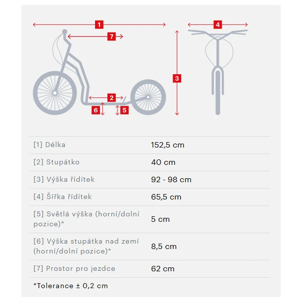 - rigiditatea verticală și torsională mai mare îmbunătățește capacitatea trotinetei de a face față terenului mai dificil și sarcinilor mai mari