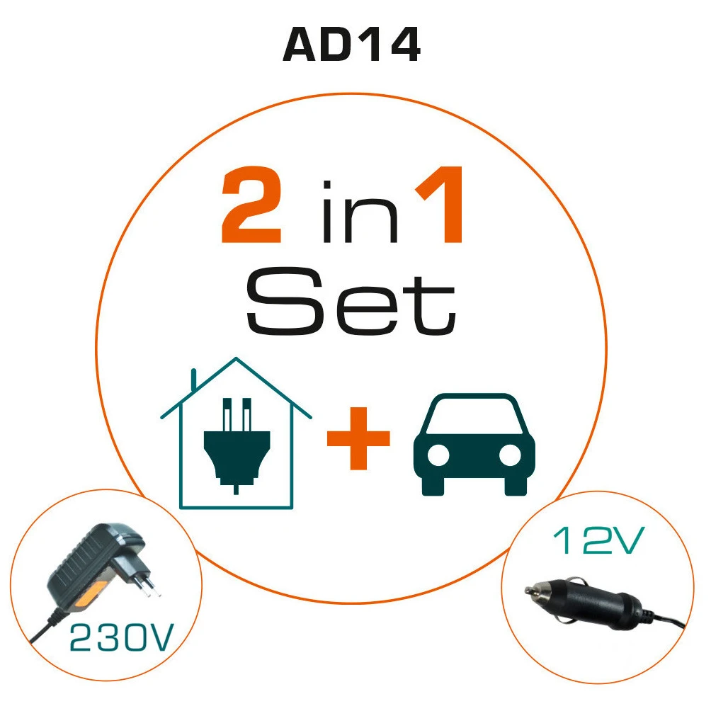 - set 2în1 - alimentare cu cablu de 12V cu ștecher pentru mașină și ștecher de 230V