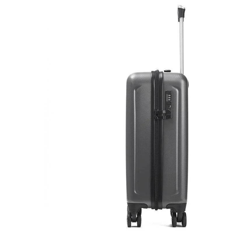 Carcasa este fabricată din material ABS în combinație cu policarbonat, materiale rezistente la deteriorări mecanice și zgârieturi. Datorită celor opt roți silențioase și a mânerului telescopic, manevrarea valizei este ușoară și lină. Fermoarul dublu de siguranță și încuietoarea combinată TSA protejează bunurile din interior. Spațiul interior este compartimentat cu buzunare cu fermoar și are curele elastice de fixare.