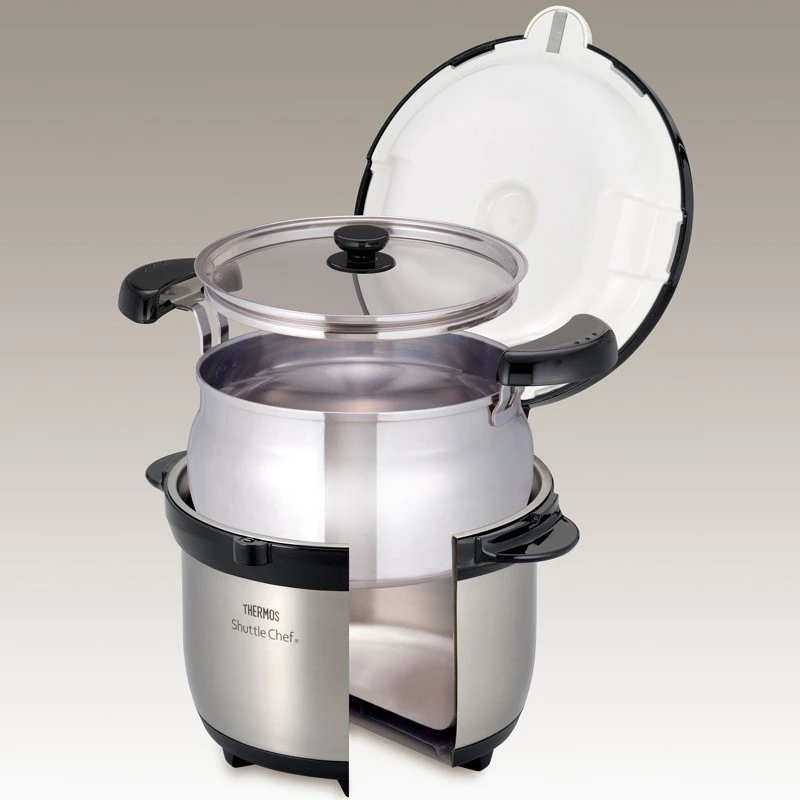 Thermos Shuttle Chef este o oală termică izolată în vid, concepută pentru gătit economic, sănătos și confortabil, fără a necesita supraveghere constantă. A fost introdusă în Japonia în 1989 și de atunci a câștigat o mare popularitate printre pasionații de activități în aer liber pentru pregătirea ușoară a meselor la cabane, în camping sau la reuniuni de familie în grădină. Este excelentă și pentru gătitul obișnuit acasă. Principiul său constă în încălzirea scurtă a preparatului pe un aragaz obișnuit, urmată de finalizarea gătitului prin menținerea propriei temperaturi într-un recipient izolat, fără aport suplimentar de energie.