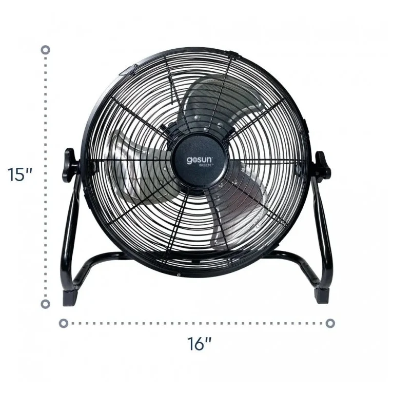 Având cea mai mare eficiență de pe piață, Breeze poate funcționa direct de la încărcătoarele solare GoSun. Asigură senzația de răcoare în timp ce soarele strălucește, apoi comută la bateria de alimentare și continuă să funcționeze peste noapte. Proiectat cu un cap înclinabil vertical, oferă o versatilitate uimitoare - poate fi utilizat pe o masă și în nisip la plajă sau poate fi suspendat deasupra capului într-un cort, caravană sau cabană. Motorul fără comutator funcționează aproape silențios pentru a minimiza interferențele și funcționează direct de la încărcătoarele solare. Zgomotul de funcționare este mai mic cu 16 db până la 48 db, la putere maximă. Beneficiază de setări versatile pentru creșterea sau reducerea capacității de răcire. Poate fi încărcat direct de la energia solară sau se poate alimenta ceasul de la acumulatorul extern. Durată lungă de funcționare cu alimentare Power 144W / 266W: setare de viteză 10 / 14 ore, setare de viteză redusă 8-10 zile.