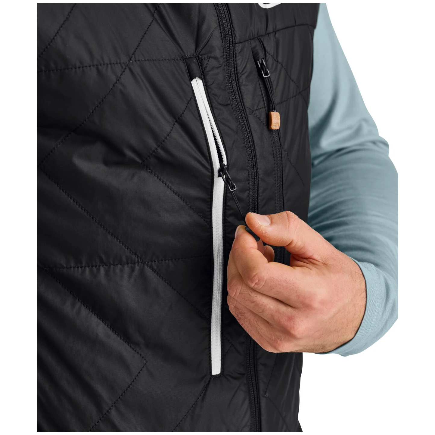 Vesta pentru bărbați Swisswool Piz Boè Vest M de la Ortovox este alegerea ideală pentru drumeții la munte, excursii cu schiurile sau alpinism. Pe lângă designul atractiv, vă va impresiona datorită croielii sportive și a greutății scăzute de doar 234g. Partea exterioară este confecționată din material rezistent și durabil Pertex® Quantum ușor și rezistent la vânt. Partea interioară este confecționată din lână elvețiană Swisswool care datorită greutății de 60g /m2 asigură un raport optim între căldură, volum și greutate. Vesta este concepută special pentru a garanta libertate maximă de mișcare și protecție împotriva vremii nefavorabile.