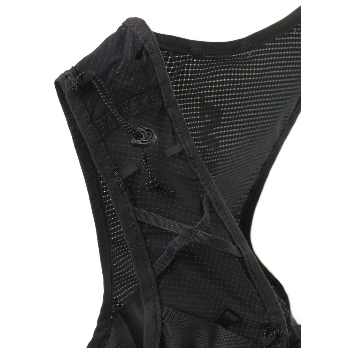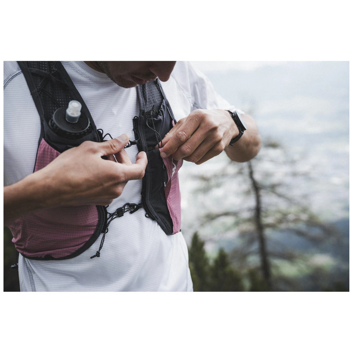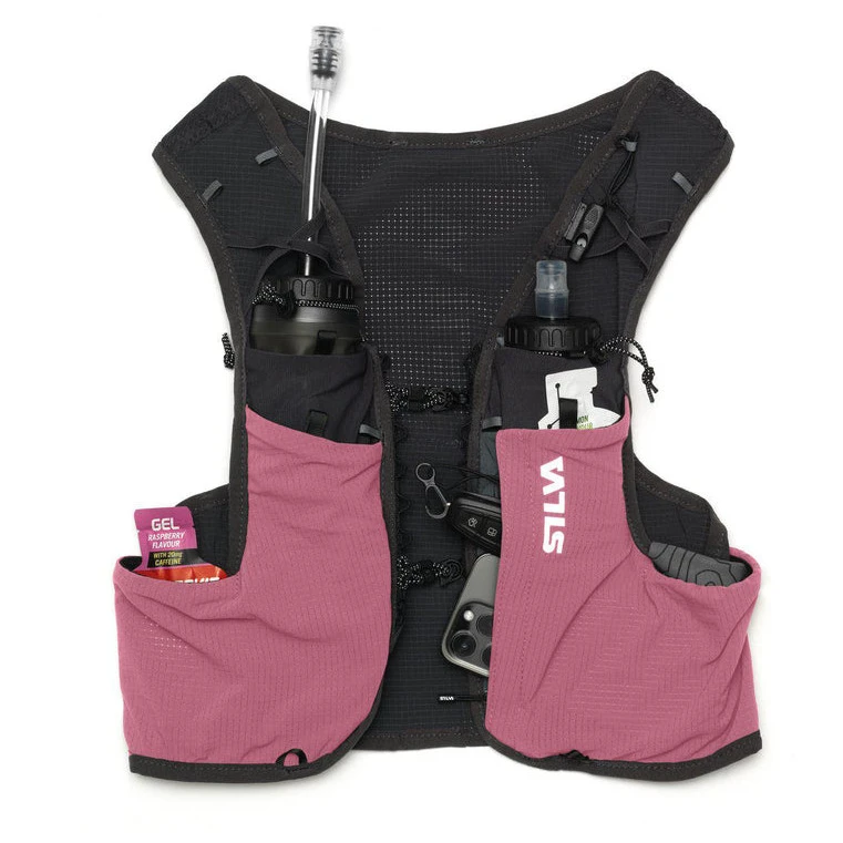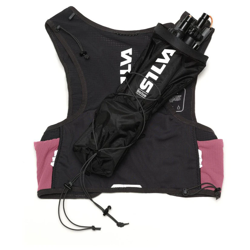 Vesta de alergare Strive 5 de la Silva este cu 24% mai ușoară decât modelul anterior Strive Light 5, are o croială îmbunătățită și este confecționată din nailon ușor ripstop și plasă respirabilă. Curelele de umăr sunt capitonate, iar buzunarele pot conține 2 sticle moi de 500 ml. Vesta are două buzunare cu fermoar, un agățătoare pentru chei, fluier și elemente reflectorizante.