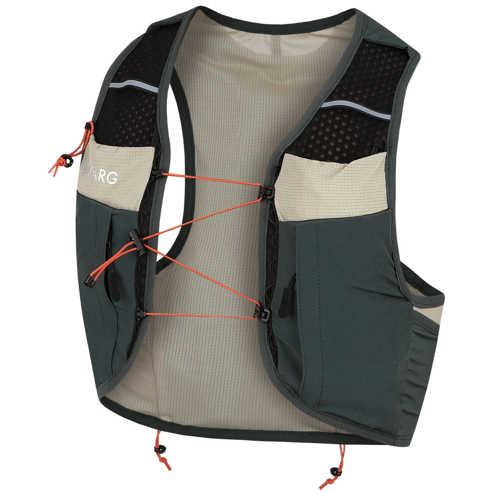 Vesta dispune de două buzunare laterale și un total de șase buzunare pe piept, dintre care două au fermoar. Buzunarele frontale sunt potrivite, de exemplu, pentru soft flask-uri, batoane energizante, în timp ce buzunarele cu fermoar servesc pentru depozitarea sigură a telefonului sau a altor obiecte mici care trebuie păstrate în siguranță. Warg Cheetah este o vestă de alergare practică, care combină respirabilitatea, stabilitatea și un spațiu mare de depozitare pentru o alergare confortabilă, fără restricții.